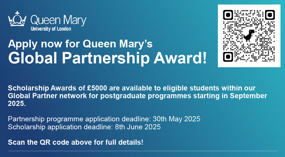 We are excited to announce that our International Partner University Queen Mary University of London is offering eligible students across the Global Partnership network the chance to apply for a Global Partnership Award of £5000.