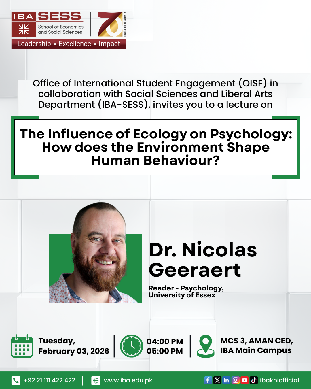 Venue: MCS 3, Aman Center for Entrepreneurial Development, Main Campus, IBA Karachi
