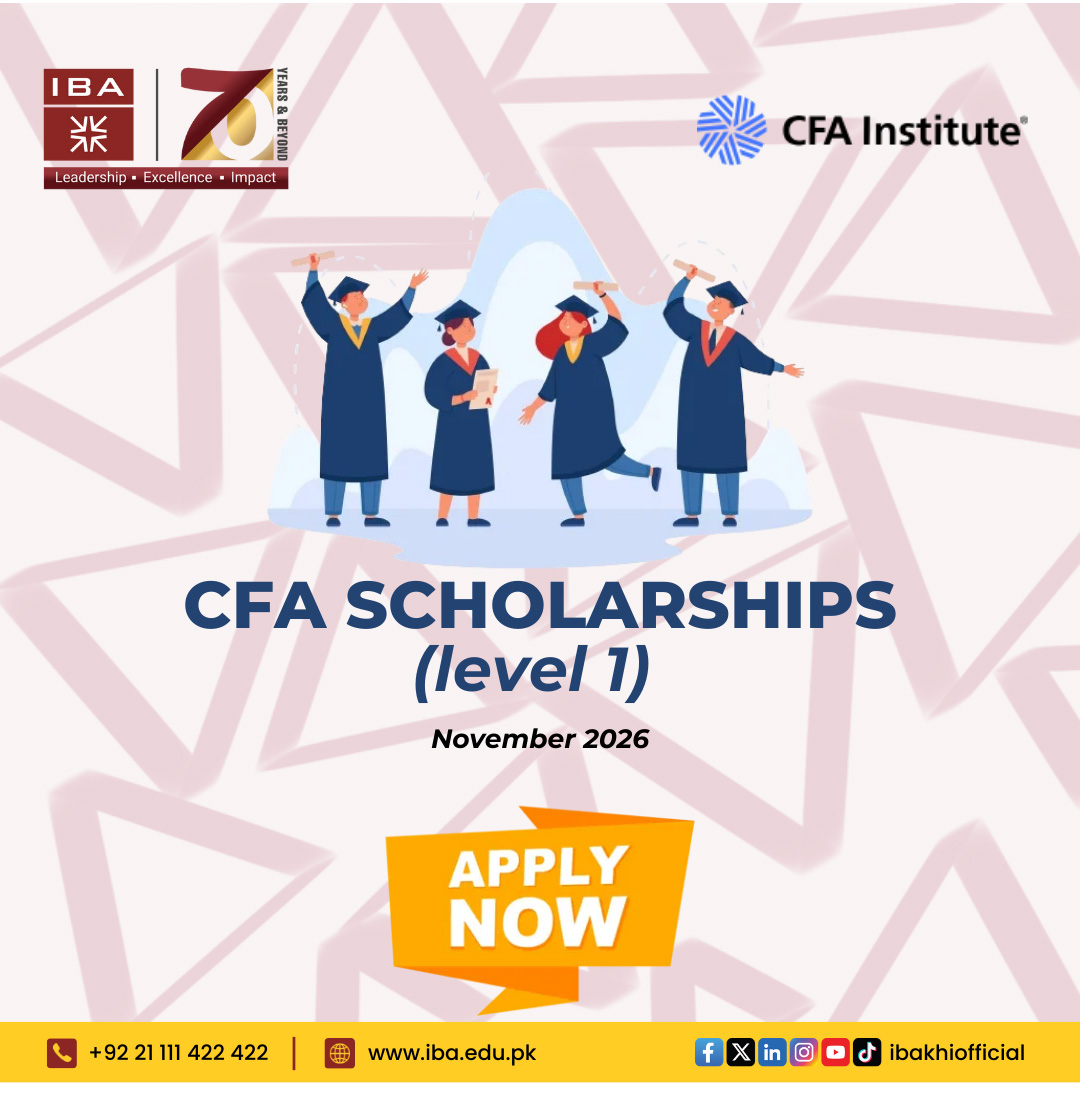 We are pleased to share with you that as partner of CFA Institute, we shall be nominating Six students for scholarships from IBA for CFA Level 1 exam scheduled for November 2026.